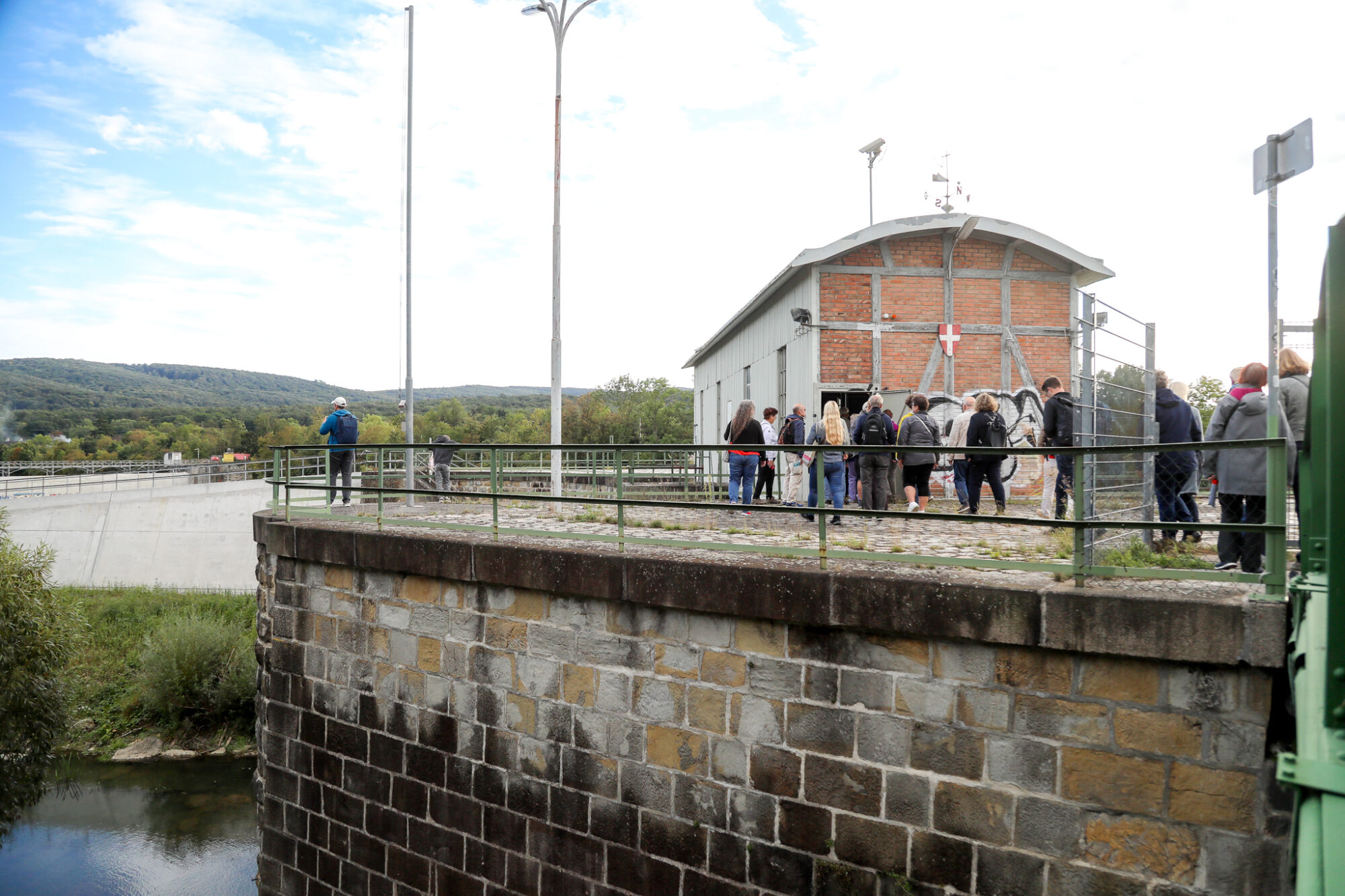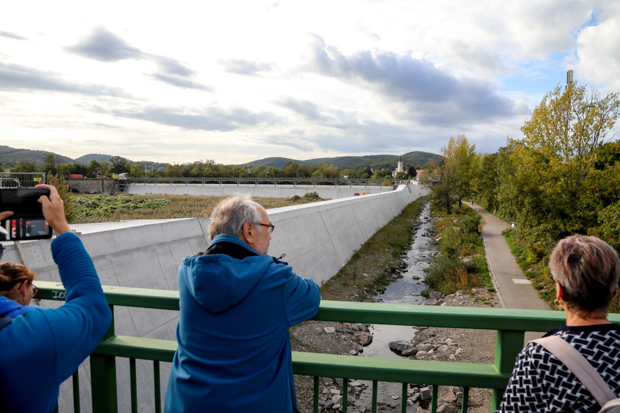 Ein interessantes Detail wurde von den beiden am Anfang erwähnt. Demnach war der Abschuss des letzten Wolfes 1833 und ein Gasthaus mit den Namen „Zum Wolf in der Au“ namensgebend für die Gegend. Der Spaziergang wurde von Stefan Frischer, von der Magistratsabteilung 45 Wiener Gewässer geführt. Er ist mit seinem Team für den Hochwasserschutz am Wienfluss zuständig. Die Anlagen wurden schon 1899 fertiggestellt und die Becken wurden früher auch zur Erholung genutzt. Es gibt insgesamt 7 Rückhaltebecken, 6 Becken dienen dem Rückhalt des Wienflusses und eines dem des Mauerbachs. 1902 wurde auch das Gebäude der Wienflussaufsicht fertiggestellt.