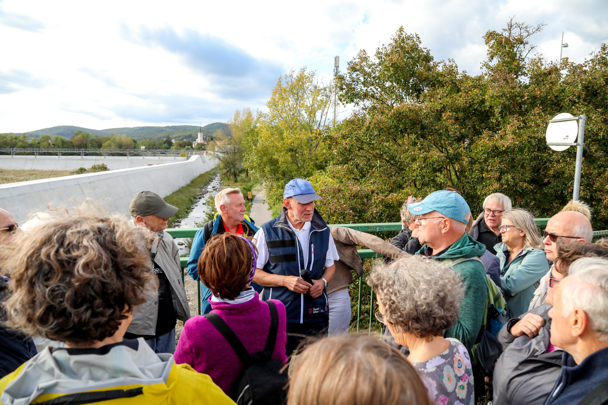Stefan Frischer von der Magistratsabteilung 45 der Stadt Wien erklärte einiges zum Hochwasserschutz am Wienfluss. (c) Mobilitätsagentur/Christian Fürthner