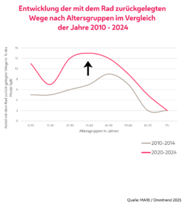 Verändert hat sich bei der jüngeren Generation der Anteil, der individuell motorisiert – also mit Auto oder Zweirad als Lenker bzw. Mitfahrer – absolviert wird. Dass der motorisierte Individualverkehr-Anteil von 22 auf 13 Prozent gesunken ist, dürfte sich laut Studie auch in weiterer Folge auswirken. Denn das Nutzungsverhalten, speziell auf das Auto bezogen, wird laut Untersuchungen beim Älterwerden mitgenommen. Ab 30 Jahren ändert sich die Pkw-Nutzung demnach kaum mehr. Zugleich würden junge Erwachsene ihre Mobilitätsgewohnheiten zu einem gewissen Grad an die eigenen Kinder weitergeben. Hier seien Trends zu mehr Zu-Fuß-Gehen und Radfahren wahrnehmbar.
