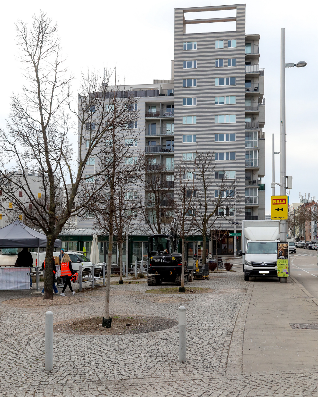 Neben einer neuen sickerfähigen, helleren Pflasterung gesellen sich zu den bestehenden 19 Bäumen bald drei neue Bäume sowie fünf Hochstammsträucher hinzu. Einzelne Baumscheiben werden miteinander verbunden, sodass großzügige, zusammenhängende Grünflächen entstehen. Insgesamt werden hier 17 Grünbeete mit über 450 Quadratmetern geschaffen. Neue Sitzgelegenheiten laden künftig zum Verweilen und Plaudern ein. Aus dem stark versiegelten Bereich entwickelt sich damit eine begrünte, gekühlte Oase und ein attraktiver Freiraum für alle im 11. Bezirk.