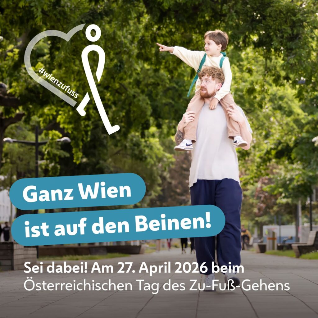 In ganz Österreich wird am 27. April der “Tag des Zu-Fuß-Gehens” begangen. Auch in Wien wird zu Mitmach-Aktionen an der Ringstraße, Gewinnspielen und Geh-Challenges eingeladen. Der Tag wirbt für das natürlichste Verkehrsmittel – denn Zu-Fuß-Gehen fördert Gesundheit, Umwelt und lokale Wirtschaft gleichermaßen. Ausgerufen wird der “Tag des Zu-Fuß-Gehens” von der bundesweiten Initiative Österreich zu Fuß. Diese Initiative wird unterstützt von Bundesländern, Gemeinden und Unternehmen.